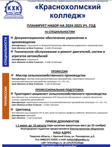 ГБПОУ «Краснохолмский колледж» продолжает приём заявлений для поступления на 2024-2025 учебный год по следующим профессиям и специальностям:
